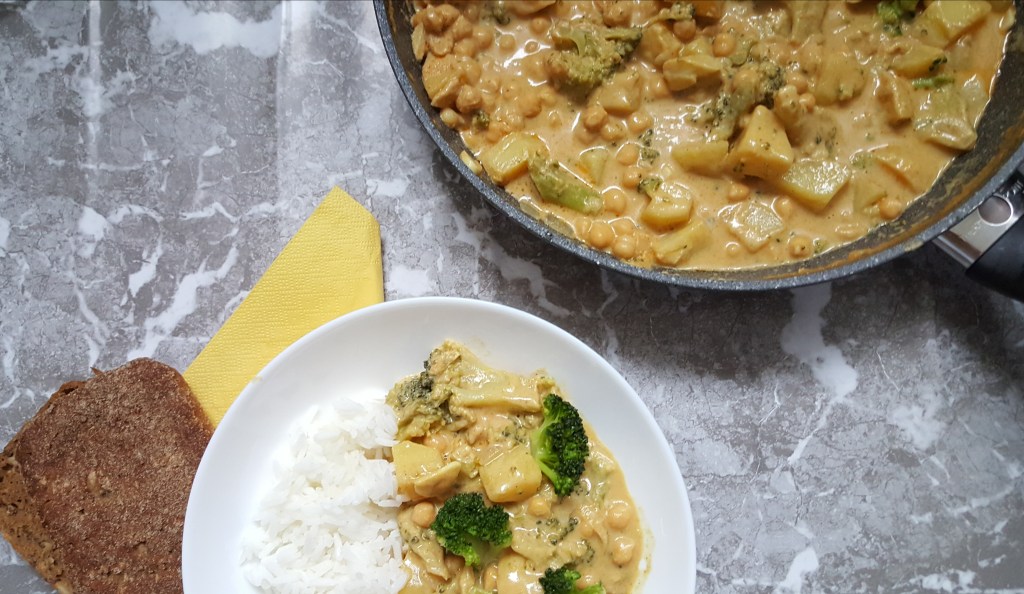 Kiedy odkryłam połączenie masła orzechowego z mleczkiem kokosowym (to taka moja wegańska śmietana), moje gotowanie nabrało innego wymiaru. Od tej chwili odkrywam coraz to nowe połączenia warzyw z tym właśnie sosem. Jest to moje danie popisowe, gdy kogoś gościmy w domu, po którym coraz rzadziej pada pytanie: „To co Ty wogóle jesz?” 😉