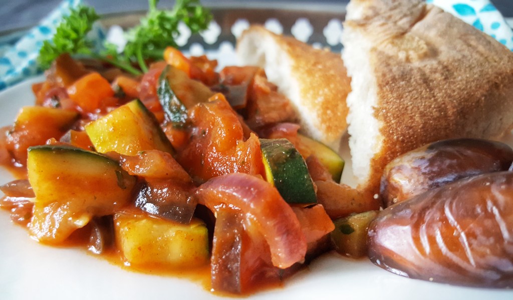 Warzywa w sosie pomidorowym, ale za to w jakim sosie. Sekretny składnik to daktyle, które odmieniły sos w coś wyjątkowego.